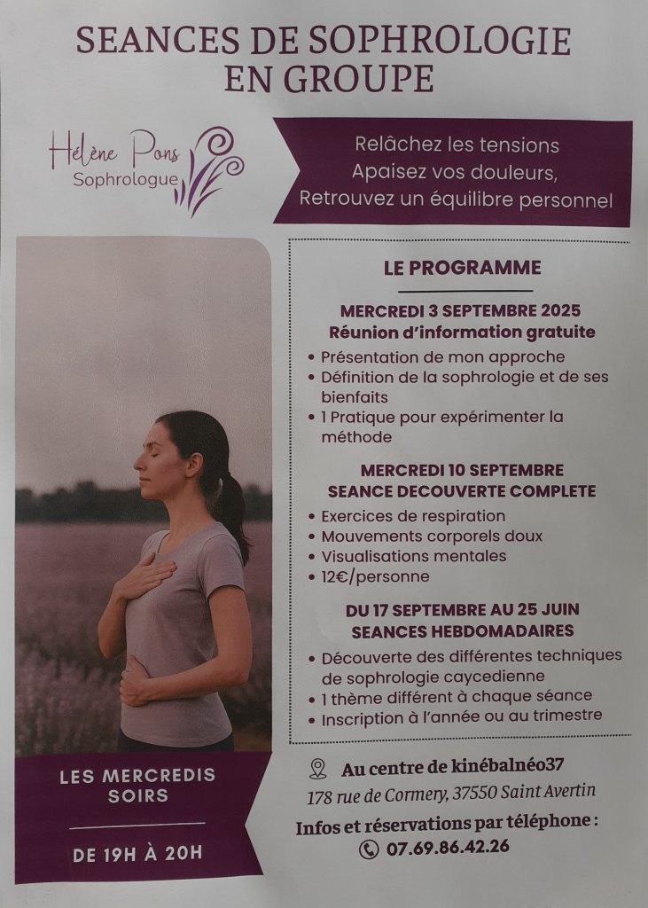 La sophrologie est une méthode basée sur des techniques de respiration, d’exercices dynamiques et de concentration.